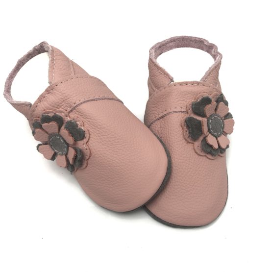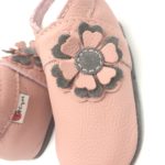 Krabbelschuhe 3D Blume in Rosa/Grau