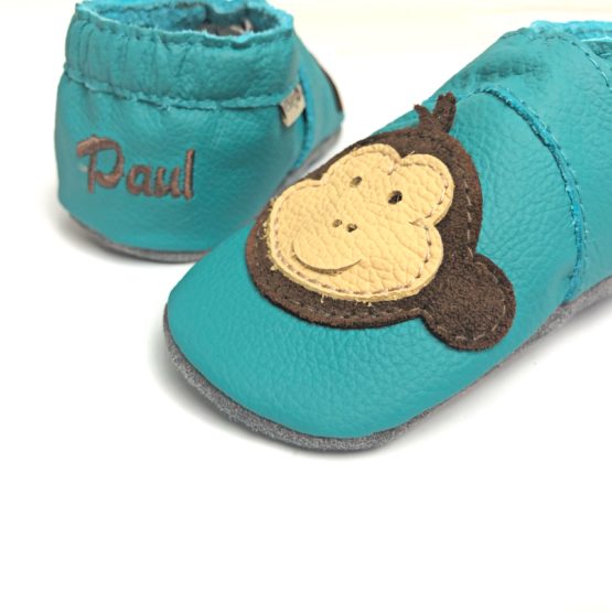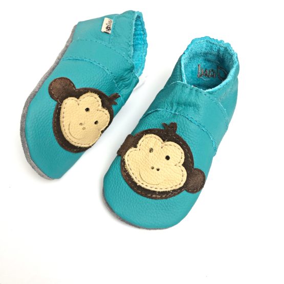 Krabbelschuhe Affe Türkis