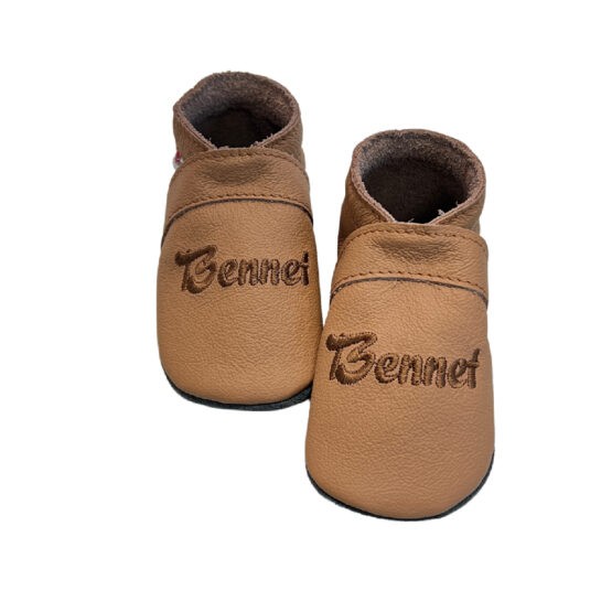 Krabbelschuhe UNI hell Braun (mit Namen optional)