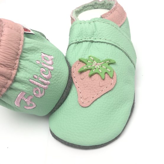 Krabbelschuhe Erdbeere mint-Rosa