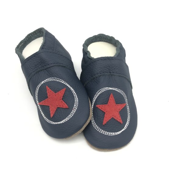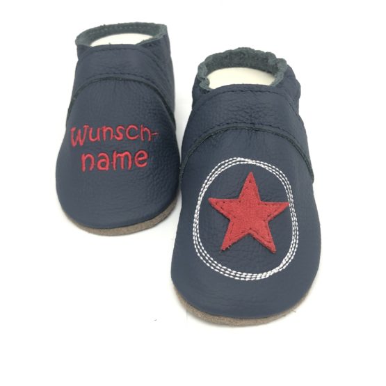 - Krabbelschuhe mit Kritzelkreis in dunkel Blau und Roten Stern