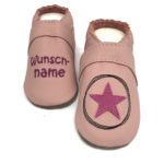 -Sollte ein Name des Kindes gewünscht werden, wird automatisch ein Kritzelkreis durch den Namen des Kindes ersetzt. Es besteht aber auch die Möglichkeit den Namen in die Fersen zu sticken ( beide Schuhe )
