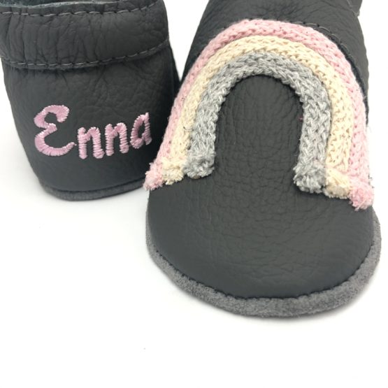 Krabbelschuhe Regenbogen Anthrazit/Rosa