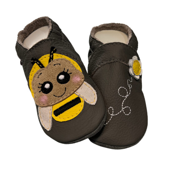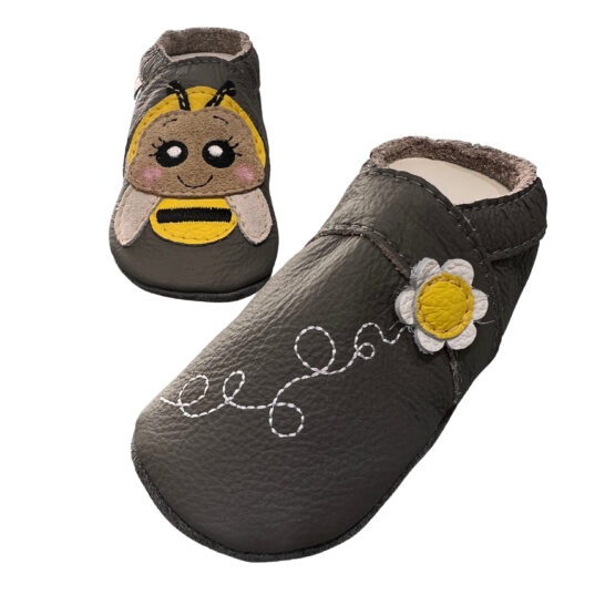 Krabbelschuhe süß Biene LOTTA auf Grau