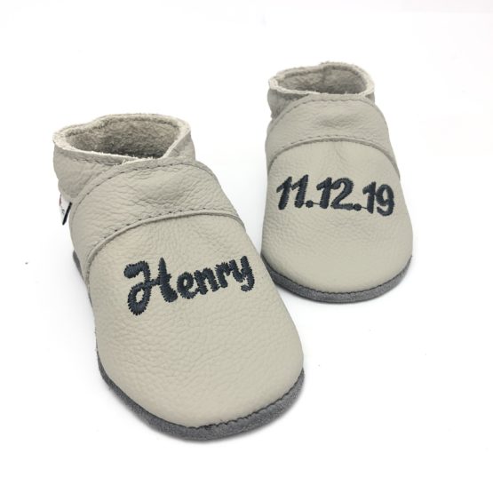 Krabbelschuhe UNI hell Grau (mit Namen optional)