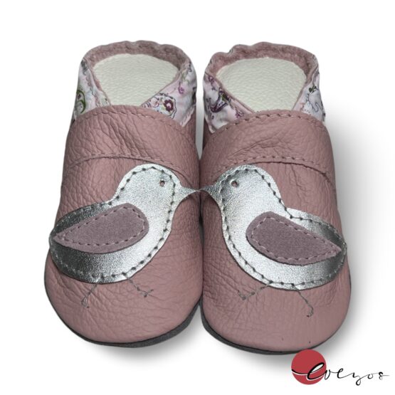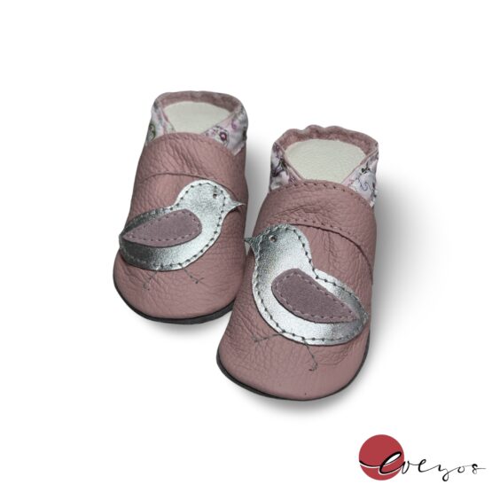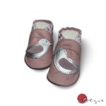 Krabbelschuhe Vogel/ Küken Rosa-Silber
