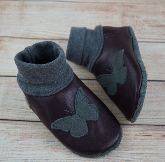 Lederstrumpf Lila mit Nubuk Schmetterling grau