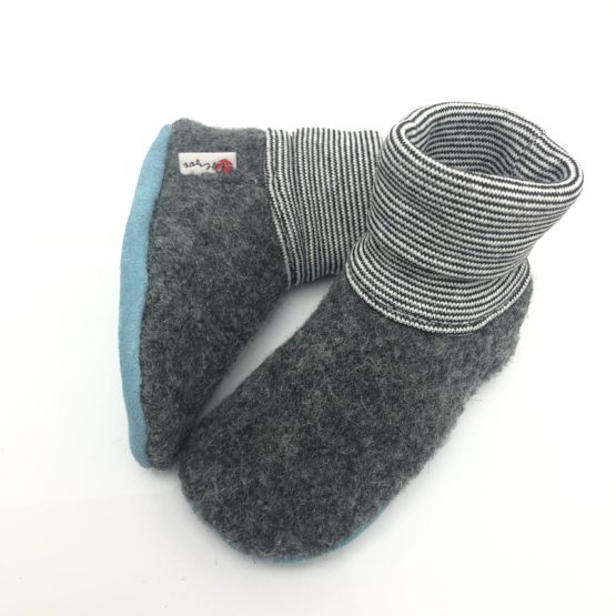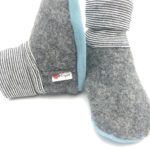 WOLLWALK Strumpf Grau mit Veloursledersohle in hell Blau