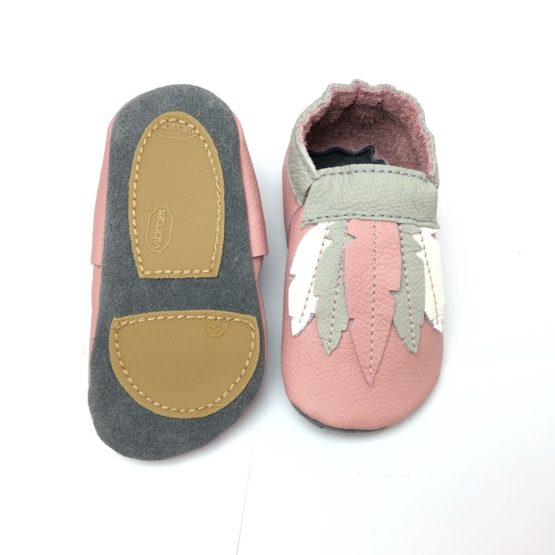 Moccasins Rosa/Grau mit Federn
