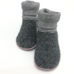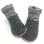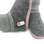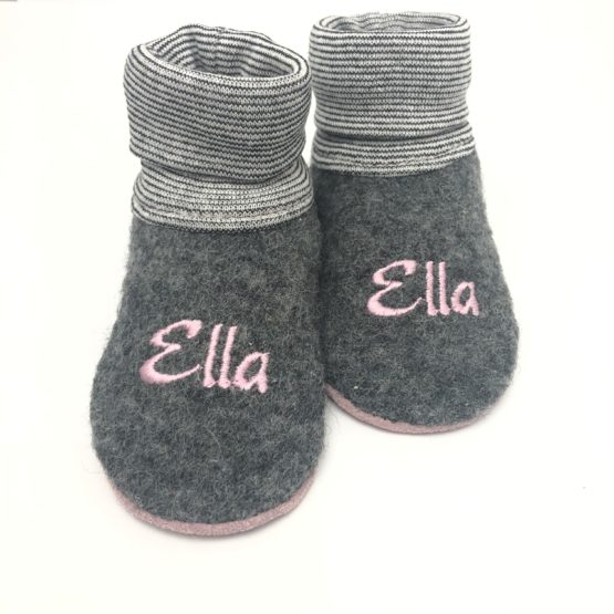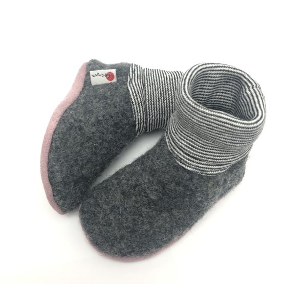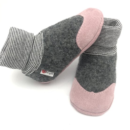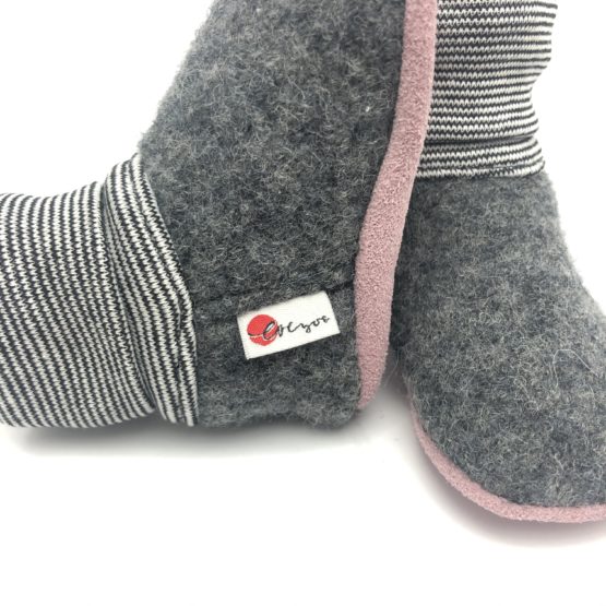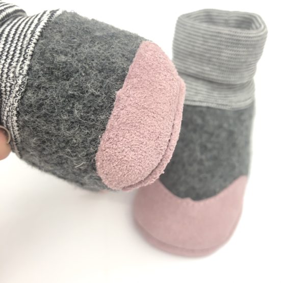Wollwalkschuhe in Grau mit Bündchen und Veloursledersohle in Rosa